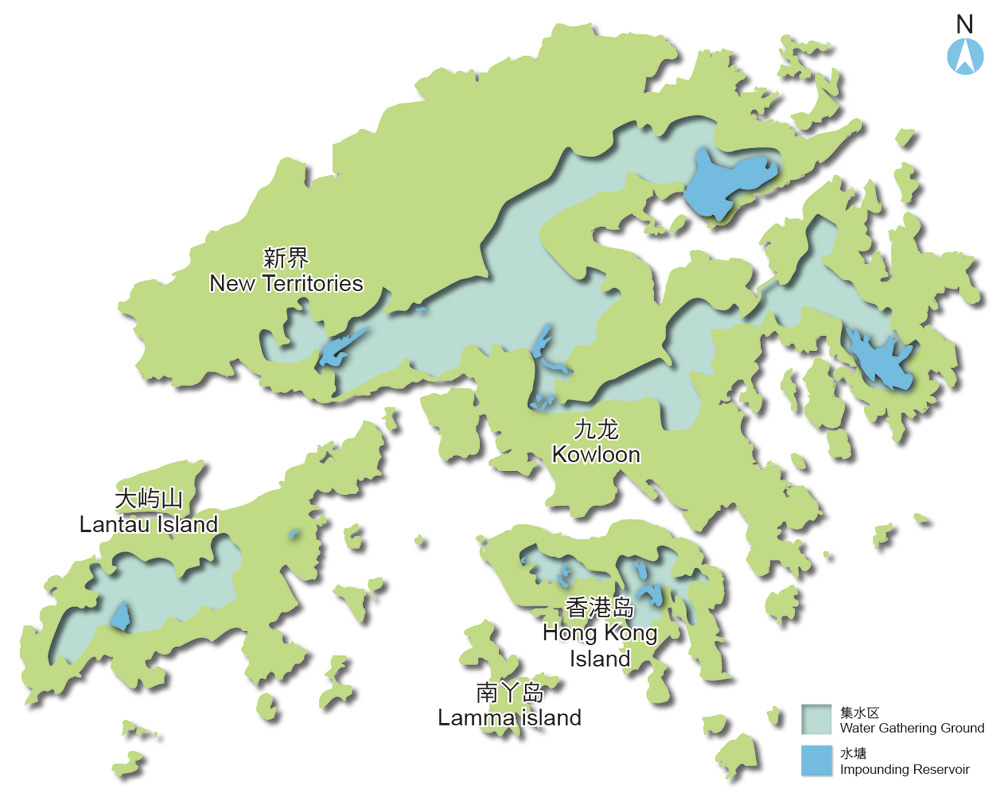 香港在2020年的总食水用量为10.27亿立方米。从本地集水区收集得来的雨水每年平均约2.58亿立方米,只能满足约25%的用水需求。香港70%以上的食水是从广东省的东江经70多公里路程输入。