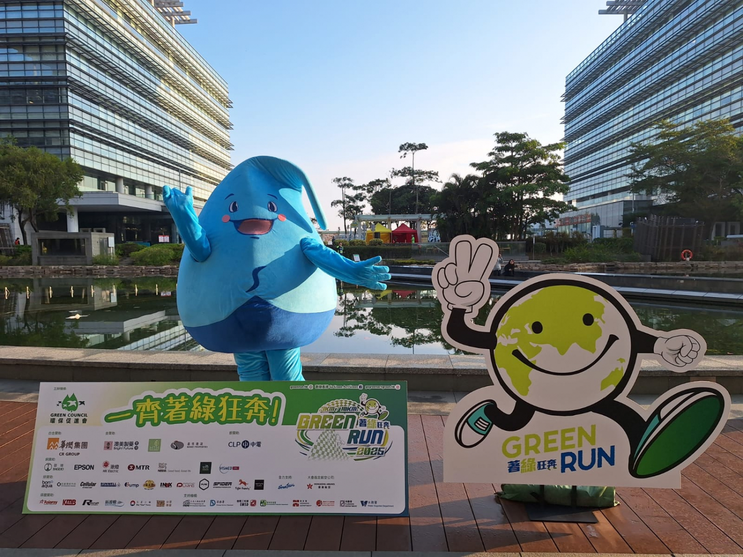 此外,大會設置多個互動遊戲。作為支持機構,水務署除了透過社交媒體推廣活動,亦於現場設置攤位,向跑手宣傳慳水知識並派發禮品。「滴惜仔」也有現身比賽場地,和跑手一起熱身之餘同時為他們打氣,為活動增添了不少活力。