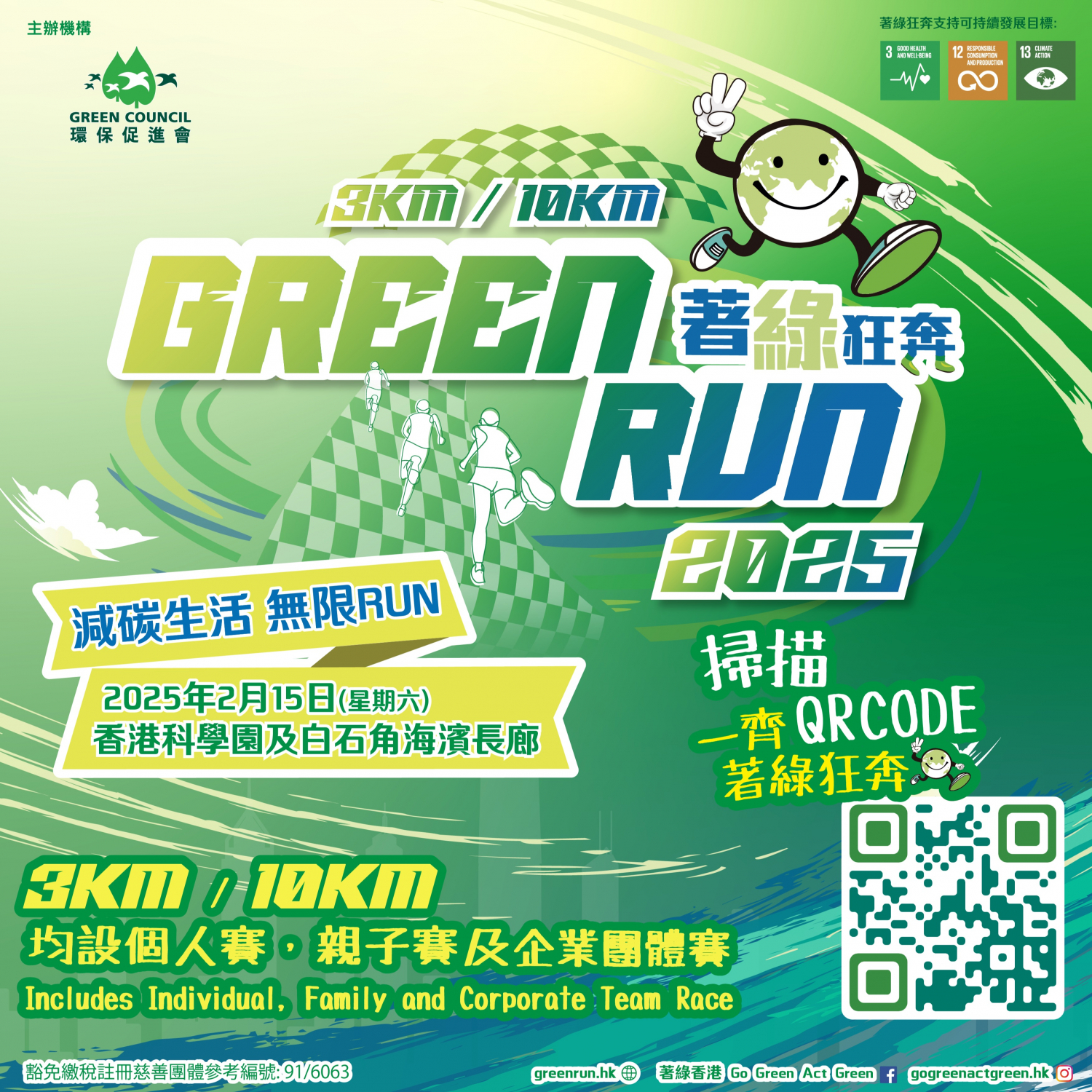由環保促進會主辦的年度活動「著綠狂奔2025」已於2025年2月15日假香港科學園及白石角海濱長廊順利舉行。今年吸引約1,000名跑手參加,以實際行動推廣綠色生活,傳遞保護環境的訊息。活動以「著綠措施,環保為先」為原則,從賽事安排到物資選用均以環保為重。